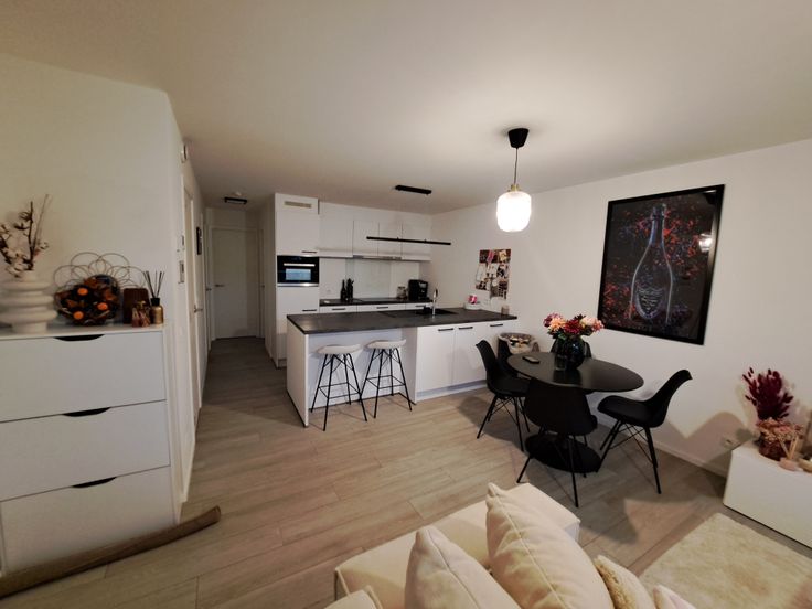 Het appartement bevat een lichtrijke woonkamer met over de volledige breedte een zuidgericht terras. De open keuken met eiland is voorzien van alle comfort nl. vaatwasmachine, inductiekookplaat, koelkast met vriesvak, combi-oven. Verder treft u een badkamer met toilet en 2 slaapkamers die toegang geven tot een klein balkon. Naast een kleine berging in het appartement is er eveneens een berging op het terras en een ruime berging in de kelder. In de kelder is er de mogelijkheid tot gebruik van een gemeenschappelijke fietsenberging en aparte afvalberging.