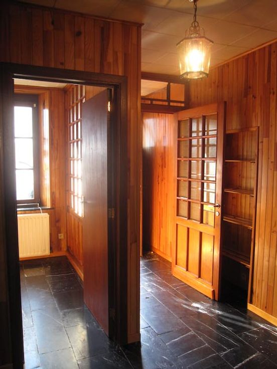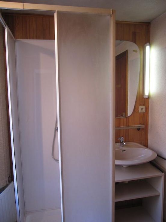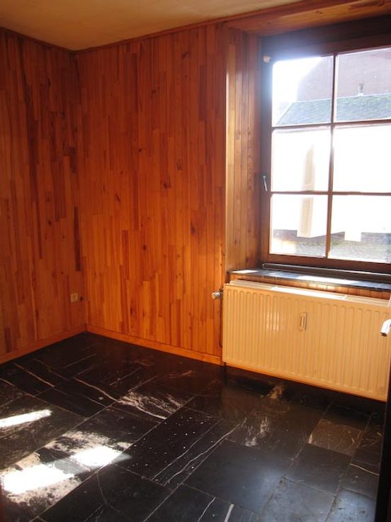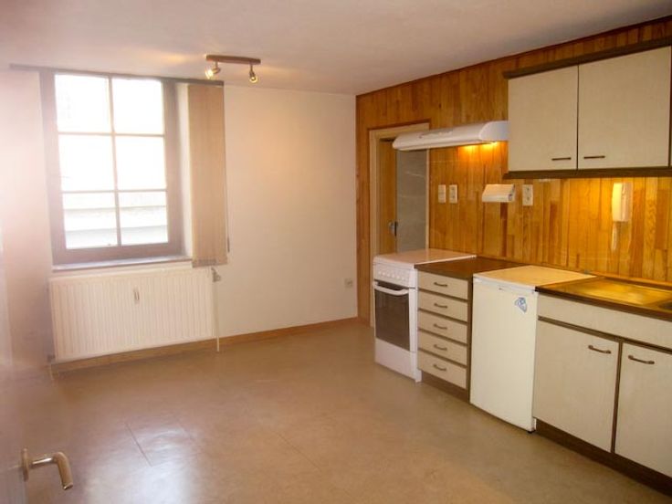 L'appartement se compose : d'un hall d'entrée isolé par une porte vitrée qui suit la porte d'entrée (et qui diminue ainsi les pertes caloriques en hiver), d'un second hall qui donne accès à la pièce principale, à la chambre, à la buanderie et à la cave. La pièce principale est garnie d'une cuisine équipée, et donne accès à une salle de douche avec lavabo et W.C. séparé. La buanderie présente des armoires hautes, et on peut y brancher machine à laver et séchoir. La chambre est assez petite mais elle peut quand même accueillir un lit de 2 personnes. Dans la cave se trouve la chaudière au mazout, le boiler électrique, ainsi que des meubles et des espaces de rangement. La situation au rez-de-chaussée est idéale pour une personne âgée et/ou seule. L'immeuble comporte 2 appartements, avec compteurs électriques séparés, et décompteurs d'eau. Le chauffage étant commun, tous les radiateurs sont équipés de calorimètres. La garantie locative sera constituée par l'équivalent de 3 mois de loyer sous la forme d'un bon d'assurance auprès de la compagnie d'assurance Korfine (voir www.korfine.be). L'appartement est libre immédiatement.