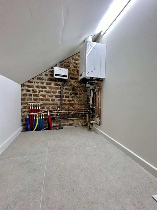 Deze ruime stadswoning bevindt zich op wandelafstand van de Grote Markt en diverse faciliteiten en onderging een totaalrenovatie met kwalitatieve en duurzame materialen. De woning is als volgt ingedeeld: via de aparte inkomhal met authentieke houten trap kan de ruime en lichtrijke leefruimte betreden worden, waar zich ook meteen de open en volledig geïnstalleerde keuken met kookeiland bevindt. Via de grote raampartijen kan de gezellige stadskoer betreden worden. Verder is er op de gelijkvloers ook een wasplaats/berging aanwezig en een gastentoilet. Op het eerste verdiep bevinden zich twee ruime slaapkamers (die elk voorzien zijn van ingemaakte kasten en bureaugedeelte), badkamer met lavabomeubel, inloopdouche en ligbad en een afzonderlijk toilet. Op het tweede verdiep bevindt zich de master bedroom die beschikt over een ruime dressing. Aansluitend aan deze slaapkamer is een tweede badkamer met lavabomeubel en inloopdouche voorzien. Verder is hier nog een extra bergruimte aanwezig en een zonnig dakterras dat aansluit op de slaapkamer. - energiezuinige woning (label B) - elektriciteit conform - zonnepanelen - ventilatiesysteem - vloerverwarming - zolderruimte aanwezig
