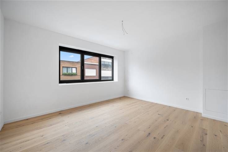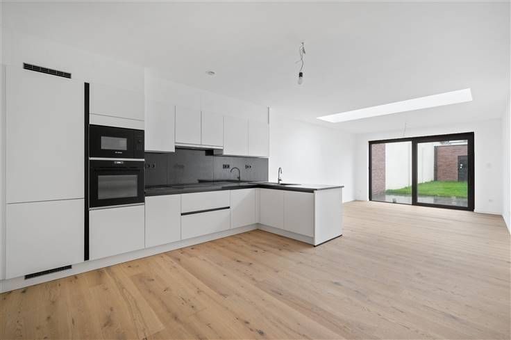 U kiest met dit huis resoluut voor de toekomst, inclusief 8 zonnepanelen, ventilatiesysteem C, warmtepomp (lucht/water), overal vloerverwarming, zwarte aluminium ramen, volledig afgewerkte opdekdeuren, regenwaterpomp met filters, etc. Alle muren zijn al voorzien van een primerlaag. Opvallend in huis, is de aanwezigheid van ingebouwde kasten op het gelijkvloers en op de eerste verdieping, een goede manier om extra bergruimte te scheppen. De royaal bemeten living en open keuken, kijken uit op een betegeld terras met afvoergeul en een mooi omheinde tuin met grasveld (beton/houtafsluiting), plus een gemetst, goed geïsoleerd tuinhuis, dat zeer goed is afgewerkt. Aan de L-vormige open eetkeuken kunnen een paar bewoners aanschuiven aan de breakfast bar. Net als de trapbekleding, is voor het werkblad zwarte graniet gebruikt. We spotten de volgende apparaten: dampkap, kookplaat, koelkast, freezer, microgolf, oven en vaatwasser. Opvallend is de mooie overgang van de tegelvloer binnen naar de tegelvloer van het terras buiten, waar het profiel van het schuifraam mooi is ingewerkt, zodat er niemand over hoeft te struikelen. De 4 kamers onderscheiden zich op twee vlakken, namelijk een mooie parketvloer en de grote oppervlakte van iedere kamer. De badkamer omvat een inloopdouche met regenfunctie en donkere glaswand, een dubbel lavabomeubel met brede spiegel, kolomkast en hangtoilet. Dankzij een haast perfecte officiële Mobiscore van 9,4 op 10, kan u hier desgewenst ook wonen zonder
