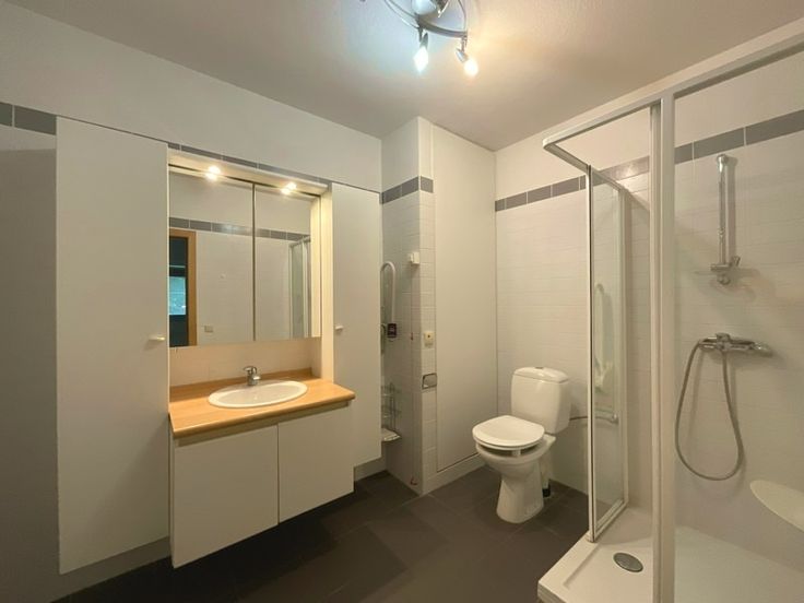 Verder zijn er twee slaapkamers waarvan 1 met ensuite badkamer met douche, toilet en lavabomeubel. Het zonnige terrasje kijkt uit op de gemeenschappelijke binnentuin. Verder is er nog een privatieve kelderberging (B31) en optioneel ook een mogelijkheid voor het huren van een garage (B1) aan € 72/maand.