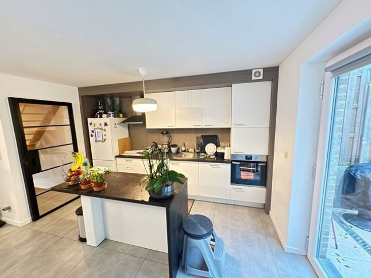 Sambreville (Tamines): Magnifique maison bel-étage de construction de 2020 de +- 220m² habitable comprenant au rez-de-chaussée: hall d'entrée, grande cave - buanderie - coin chaufferie, garage carrelé avec porte électrique. 1ère étage: hall, wc, grand living avec cuisine équipée ouverte, terrasse de +- 10m² vue sur verdure. 2éme étage: hall de nuit, 2 grandes chambres, 1 salle de bain (double évier, bain), 1 salle d'eau (évier - wc- douche). 3ème étage: 1 grande chambre, grenier. Châssis PVC DV avec strores. Chauffage central mazout (cuve de 1500l), citerne d'eau de pluie de 10.000€. Alarme. Certificat électrique conforme. Partie jardin mais non exploitable. Endroit calme (voie sans issue) et à proximité de toutes commodités. RC: 857€. Faire offre à partir de 295.000€. (l'agent n'a aucun pouvoir de décision quant aux offres reçues).