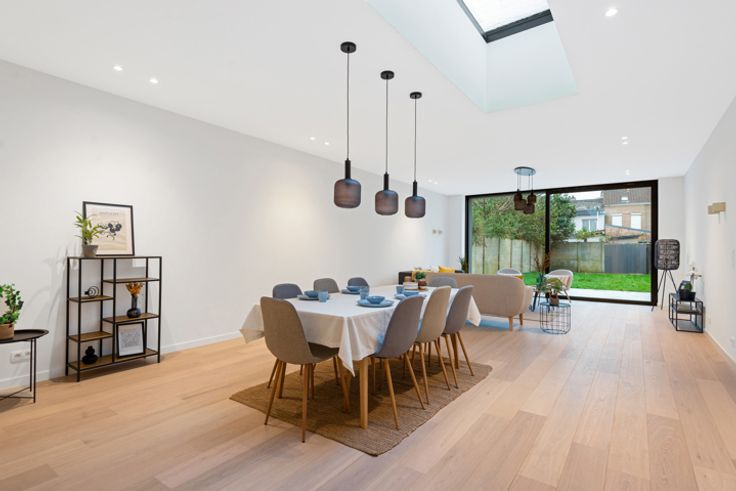 Droom je van een moderne thuis waarin je meubels perfect tot hun recht komen? Dan is deze prachtig gerenoveerde woning precies wat je zoekt! Na een grondige renovatie heeft dit pand een A-label gekregen dankzij super isolerende beglazing, een condenserende ketel en een volledig geïsoleerde buitenschil. Gelijkvloers: Bij binnenkomst word je verwelkomd in de ruime inkomhal met vestiaire. De brede garage met extra hoge poort biedt volop mogelijkheden. De schitterende keuken met eiland gaat naadloos over in een lichte en ruime leefruimte, ideaal voor gezellige avonden. Het gelijkvloers wordt verder compleet gemaakt met een gastentoilet, een tweede badkamer, een wasplaats en berging. Geniet van de zon op het zuid-west terras en in de verzorgde tuin! Eerste verdieping: Hier vind je een luxe badkamer met inloopdouche, bad en dubbele lavabo. De masterbedroom beschikt over een aangrenzende dressing, perfect als bureau of vierde slaapkamer. Twee tienerkamers maken het geheel compleet. Extra's: Een droge kelder ideaal voor het bewaren van wijn, LED-verlichting doorheen de woning, en alles is neutraal wit geschilderd. Kortom, een instapklare woning met alle moderne gemakken! Mis deze kans niet en maak snel een afspraak voor een bezichtiging tijdens onze bezoekmoment op 16/11.