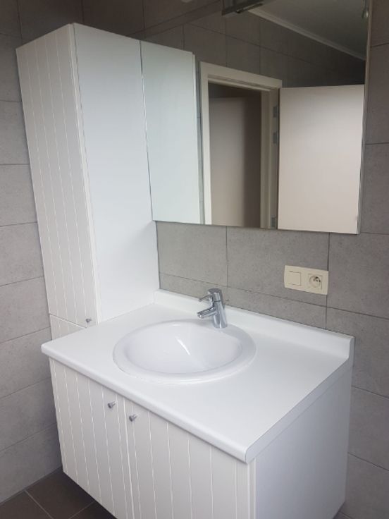 Appartement op tweede verdieping met groot zonneterras in het centrum van Zaffelare. Living met open ingerichte keuken. Badkamer met ligbad en douche, 2 slaapkamers, dakterras en garage. CV met aardgas. Algemene kosten 20€/maand.
