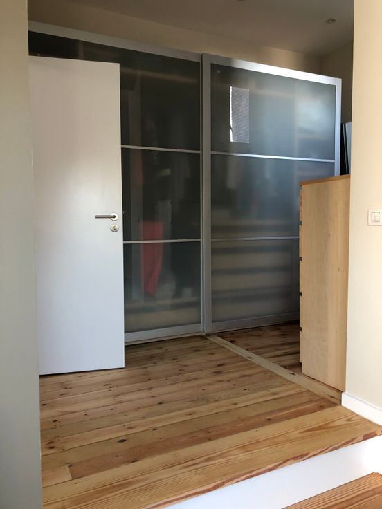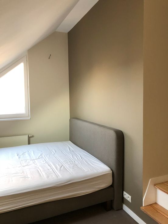 Dans maison de caractère fin XIXième siècle, charmant duplex (+/-60m2) au premier étage. L’appartement se compose comme suit : hall d’entrée avec placard, WC, salon et salle à manger, cuisine équipée (four, vitrocéramique, hotte, lave–vaisselle, pas de frigo). A l’étage, une chambre avec placards encastrés, dressing, salle de bain (emplacement machine à laver) avec WC. La chambre et le dressing sont les 2 seules pièces meublées (lit, garde-robe et 2 commodes à tiroirs). Parquet au sol. Double vitrage. Porte blindée et grenier.