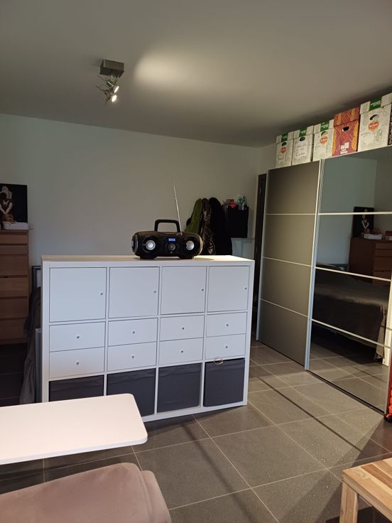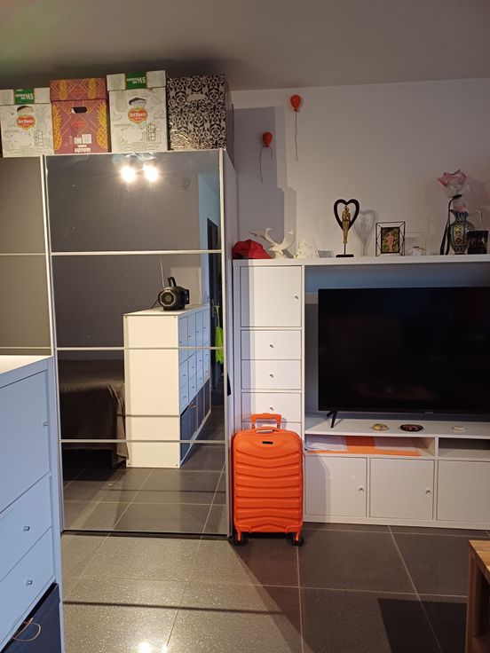 Studio à louer, 42 mètre carré, cuisine équipée, salon, table à dîner, sdb, douche, meuble tv, fauteuil, lit, armoire. Près du centre ville. Près des commerces et grandes axes. Pour personne seule, calme. Bâtiment très calme, non fumeur. Deuxième étage sans ascenseur.