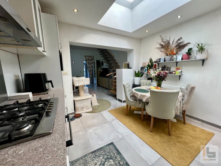 Deze instapklare woning kan u terugvinden op wandelafstand van het centrum van Ronse. De woning werd reeds grondig aangepakt, maar verdient hier en daar nog een laatste afwerking. Indeling: eetplaats, leefruimte, open keuken, badkamer, en apart toilet. Op de verdieping zijn er 2 slaapkamers en een vaste trap richting de zolderverdieping, die ingedeeld is als 3de slaapkamer. Stadstuintje met tuinhuis aanwezig, die nog leeggemaakt wordt door de verkoper. Kleine bergzolder aanwezig.