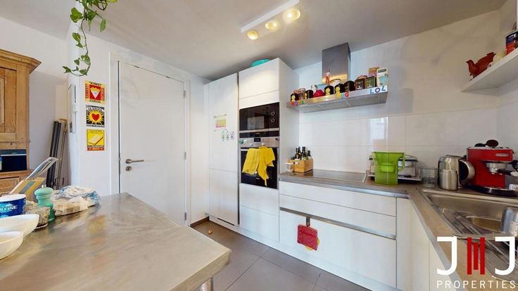 Nestled in the heart of the Dansaert neighborhood, in a lively area close to Sainte-Catherine and just steps away from the Halles de Saint Géry, J&J Properties presents this bright 2-bedroom apartment of approximately 96m² with a pleasant southwest-facing terrace. Located on the 2nd floor of a recent building (2017), the apartment consists of an entrance hall, a bright living/dining room with access to the terrace of approximately 8m², a fully equipped American kitchen (fridge, freezer, dishwasher, etc.), and a laundry area. The sleeping area comprises two bedrooms of 16m² and 10m², a bathroom with a double sink and a bathtub, and a separate toilet. A mandatory parking space (+€35,000) and a cellar complete the property. Technical details: PEB B, compliant electricity, triple glazing, and a double-flow ventilation system. Practical details: bike room and garbage room, 130m from public transport (trams and buses), only 1km from the Grand Place of Brussels, close to shops, restaurants, and cultural venues such as museums, theaters, and much more. A must-visit without delay! More information at: www.jj-properties.be REF : 6327460