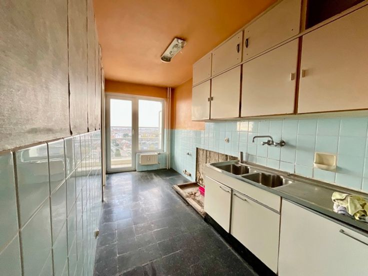 WIJK DE WAND/MUTSAARD - Wij bieden u dit lichte appartement met 3 slaapkamers, volledig te renoveren, gelegen op de 11e verdieping met een prachtig uitzicht. Het appartement bestaat uit een ruime inkomhal met ingebouwde kasten, keuken, woonkamer en eetkamer met voorste terras, drie slaapkamers en achterste terras, aparte wc, badkamer. Kelder in de onderbouw. Mogelijkheid om een garagebox te kopen (+ 25.000€) en/of een buitenparkeerplaats (+10.000€). Uitstekende EPC C. Informatie en inlichtingen: RESIDENCY 02 268 58 00