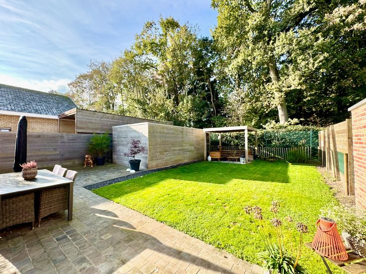 De tuin, overkapping, zonneterras, aparte garage en de oprit werden van a tot z smaakvol en zorgvuldig aangelegd, dit is een kost dat u als koper niet meer hoeft te maken in een nieuwbouwverhaal !