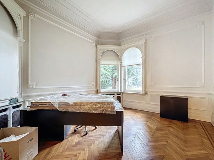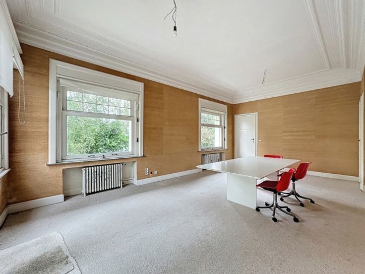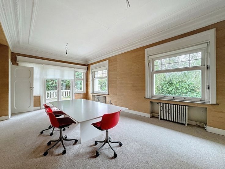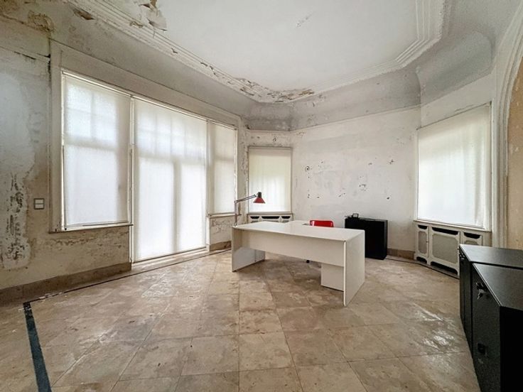 STOCKEL / In het hart van Stockel, dicht bij Place Dumon en gebouwd op een prachtig bosrijk perceel van 15 hectare en aan het zicht onttrokken, prachtige kantoren in Normandische stijl uit 1930. Ze ontwikkelen een oppervlakte van ongeveer 800m2 verdeeld over 4 niveaus (waaronder 1 kelder en 3 niveaus) en een conciërge van ongeveer 200m2 om te renoveren. De huidige toewijzing is voor kantoorgebruik, maar zeer goed potentieel voor residentieel, gemengd of voor het opzetten van een ontwikkelingsproject. Een garage, PK-locaties. Veel mooie historische elementen. Lift . Uitzonderlijke locatie. Verkoop van bedrijfsaandelen. Informatie en dossier op aanvraag op 0477 54 56 04 of 02 533 40 40.