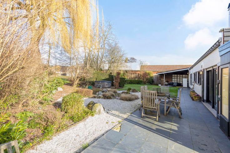 Eigendom op 7.100m² bestaande uit een grote villa met voor en achtertuin met aanpalend 2 grote magazijnen en bijhorende parking. De villa bestaat uit inkom met apart toilet, grote en volledig ingerichte leefkeuken en gezellige living, aanpalend veranda. Tevens 2 slaapkamers en badkamer op het gelijkvloers. Boven nog eens 3 slaapkamers en een zolder. Dubbele garage en wasplaats. De twee magazijnen van 600m² en 1.100m² zijn een troef voor wie wonen en werken wenst te combineren. Het magazijn van 600m² is momenteel ingericht als showroom en stockage. Het grote magazijn staat momenteel leeg. Heel veel ruimte, heel veel privacy, achterliggend aan de Gentseweg.
