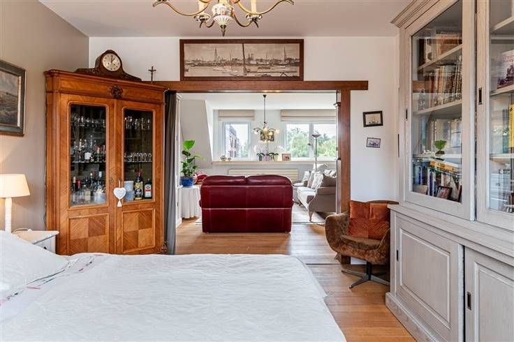 Instapklaar duplex appartement (217m²) met 4 slaapkamers, terras (30 m²) en garage in Kapellen.In deze straat woon je rustig, maar geniet je tegelijkertijd van de nabijheid van de dorpskern. Er stoppen tal van bussen in de buurt en ook het station bereik je gemakkelijk te voet of met de fiets.Het appartement maakt deel uit van een gebouw uit 1993, dat in prima staat verkeert. Het is gelegen op de derde en vierde verdieping en is bereikbaar met de lift. De elektriciteit is conform, de verwarming is op gas en de ramen beschikken over dubbele beglazing.Met de grote beschikbare oppervlakte heb je een zee aan ruimte ter beschikking. Je komt binnen in de hal met vestiairekast en apart gastentoilet. De hal geeft verder uit op een eerste slaapkamer (9 m²), momenteel ingericht als dressing, een tweede slaapkamer (11 m²) en de badkamer (6 m²). Vervolgens bereik je de leefruimte (56 m²). Grenzend hieraan is er een ruimte van 17 m² aanwezig, die momenteel dienst doet als slaapkamer, maar extra mogelijkheden biedt. De keuken met aanpalende eetkamer is 20 m² groot en via een schuifdeur heb je toegang tot het zuid-west-georiënteerde terras (30 m²). Op de bovenverdieping bevindt zich een laatste slaapkamer van zo’n 30 m², aparte wc en nog extra bergruimte. Tot slot is de garage inbegrepen in de aankoopprijs. Ruim wonen nabij het dorpscentrum? Mis deze kans niet! Bewoonbare opp.217m² ref.: bruto vloeropp. EPC-certificaat. Voor meer info of een gratis schatting surf naar www.hansimmo.be