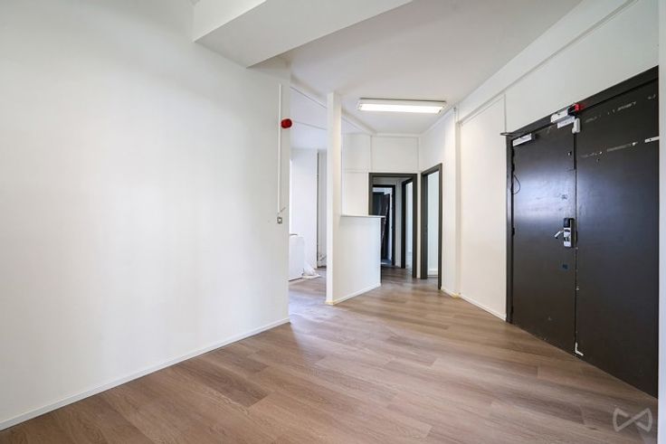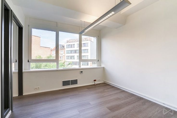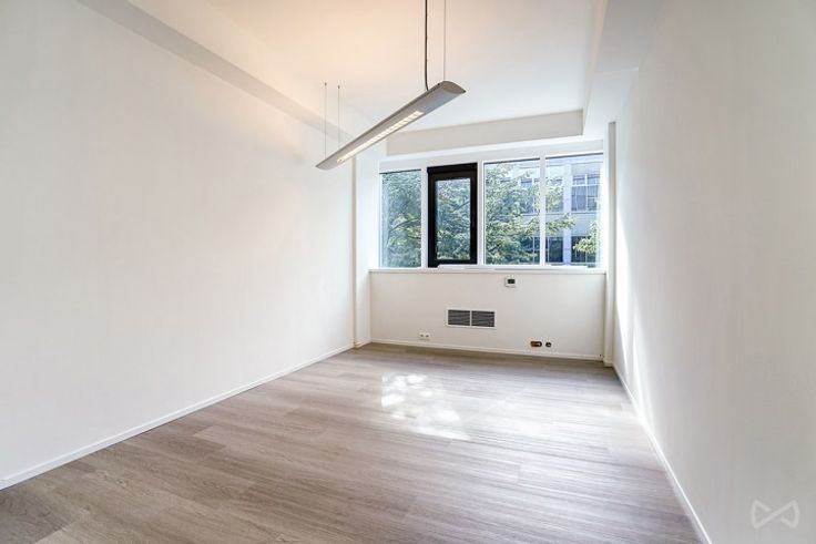 De onlangs gerenoveerde kantoren hebben grote ramen met dubbele beglazing voor optimale isolatie, elegante vloeren en een plafondhoogte van 2,85 meter. Luchtverwarming en zorgvuldige verlichting zorgen voor een aangename werkomgeving.