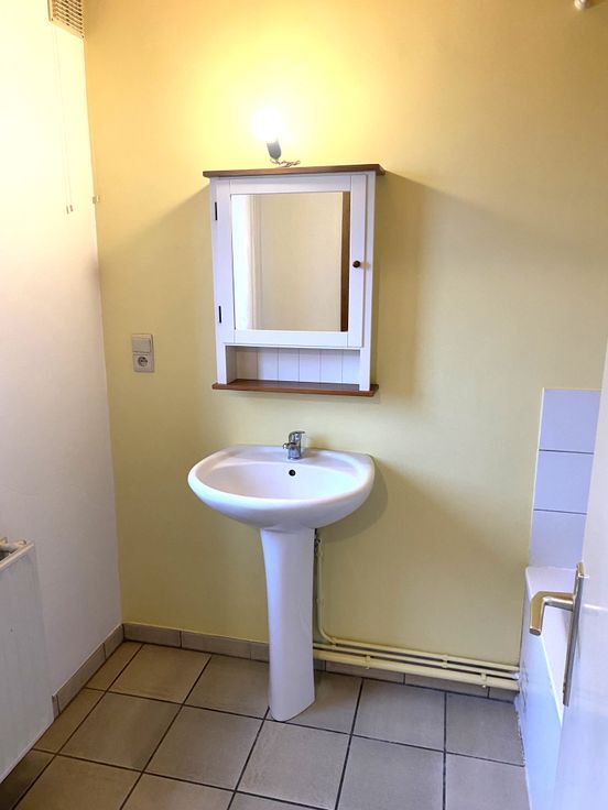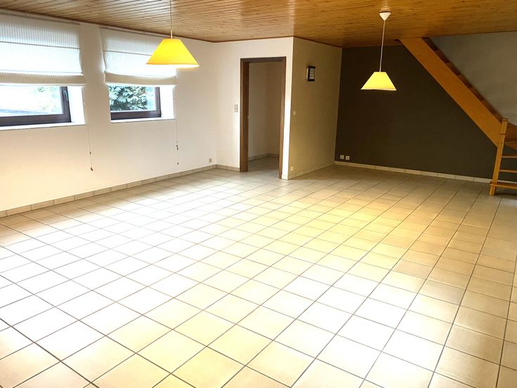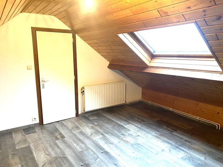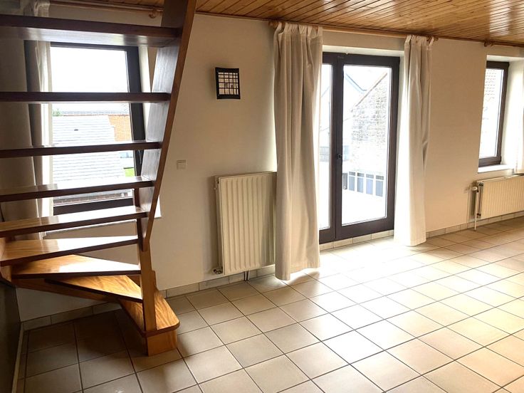 Très beau triplex situé à la fois à la campagne et en même temps à 5 minutes de toutes commodités. Il est composé comme suit: Au rez-de-chaussée un hall d'entrée, au 1er une cuisine ouverte sur un séjour de plus de 40 m², un hall de nuit, une salle de bain et une chambre. Au 2ème une deuxième chambre spacieuse de 18 m² et un grenier de plus de 30 m². Place de parking en devanture et espace extérieur de plus de 40 m². Possibilité de louer un garage au prix de 70 euros par mois.
