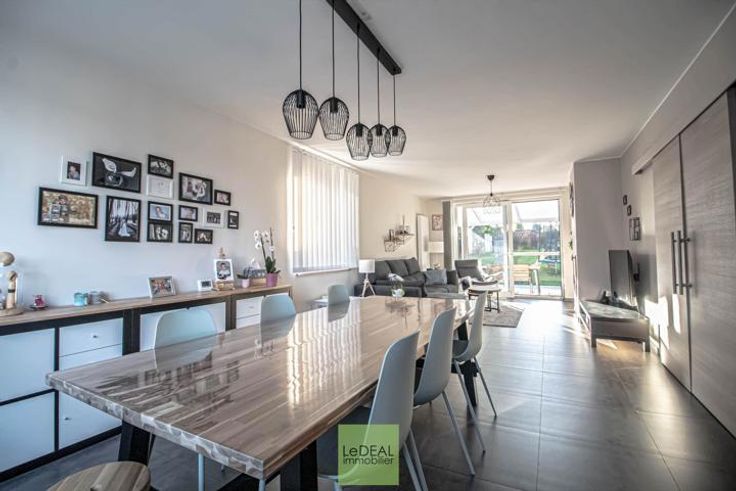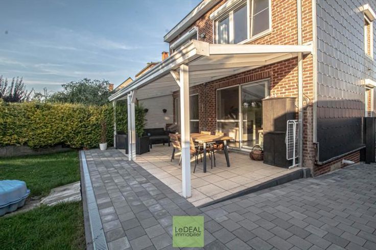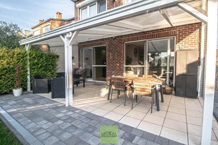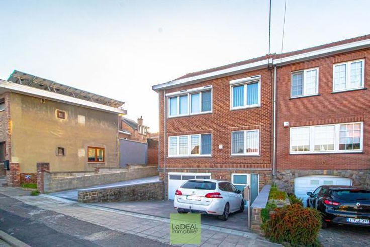 !! SOUS-OPTION !! VISITES SUSPENDUES !! !! VISITE VIRTUELLE DISPONIBLE SUR NOTRE SITE !! Le DEAL immobilier vous propose cette maison 3 façades de 175m² habitable (hors grenier et garage), situé dans une rue calme de Marcinelle reliant le Quartier des Bruyères à celui de Hublinbu. Ce bien possède des emplacements privatifs en façade, un passage latéral avec portail menant au jardin. Le bien se compose d'un hall d'entrée menant au garage avec porte sectionnelle motorisée et à l'espace buanderie. Au 1er étage, un hall donnant sur une première toilette séparée et une pièce bureau. Ce hall donne accès au séjour lumineux, de plain-pied avec la terrasse et le jardin !! Espace cuisine full équipée. Au 2e étage, un hall de nuit donnant sur 3 chambres, une salle de douche et un dressing. Grenier accessible via une trappe. Châssis en PVC DV avec volet solaire à l'étage et moustiquaires . Système d'alarme, Electricité conforme jusqu'en 2036. Chaudière de 2018. RC de 819€. PEB cat B !! INFOS ET VISITES AU 071/34.11.32 ou sur INFO@dealimmo.be