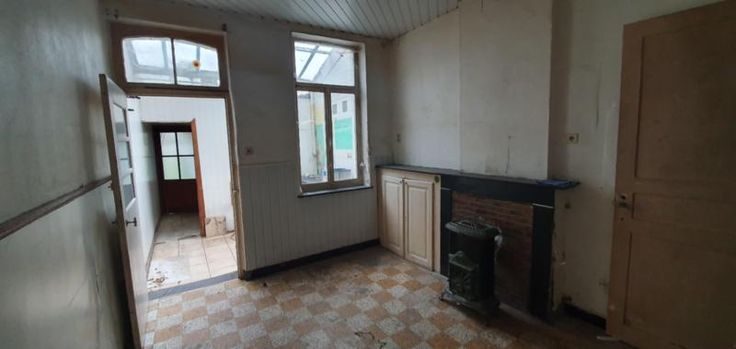 se composant : cave en 2 locaux sain, salon (+/-15 m²), salle à manger (+/- 13 m²), cuisine/véranda à rééquiper totalement, petite salle de bains à refaire. Etage 2 chambres (+/- 15 et 13 m²). Grenier aménageable (+/- 30 m²), doubles vitrages sur bois, jardinet fond limité par fil vert.