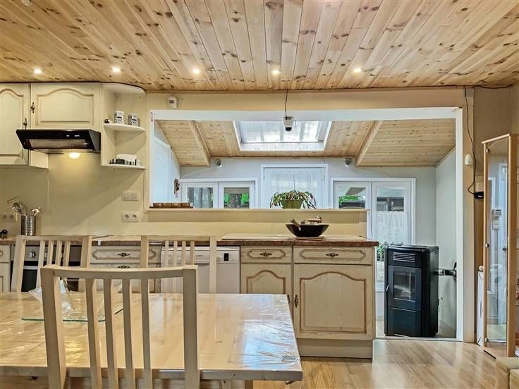 VERKOCHT ! ! In de domein "Les Brûlins", op een steenworp afstand van het centrum van Resteigne en de Lesse, stellen wij u deze bungalow met 2 slaapkamers voor. Hij werd onlangs grotendeels gerenoveerd en is perfect onderhouden. Met zijn ruime woonkamer inclusief de ingerichte keuken, en de vele openingen naar buiten, is het er, ’s zomers zowel als ’s winters, aangenaam om te leven! De pluspunten? Een groot overdekt terras, een omheinde tuin waar u afgeschermd bent van nieuwsgierige blikken en heel veel bergingsruimtes!