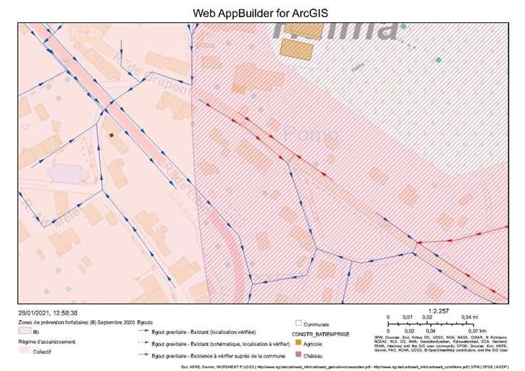 L'eau et l'électricité passent dans les rues, le raccordement à l'égout rue de Libin est existant.