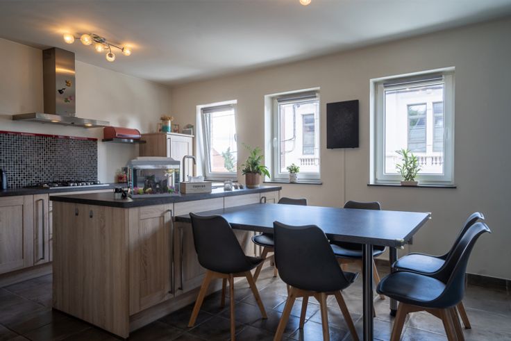 ***SOUS COMPROMIS DE VENTE/VISITES SUSPENDUES***OFFRE ACTUELLE 160.000 EUROS*** Dans cet immeuble construit en 2014 (petite copropriété de deux appartements), nous proposons ce superbe duplex avec balcon composé : hall d'entrée avec dégagement vers salon, une grande cuisine équipée avec espace dînatoire, une buanderie, une toilette séparée, dégagement vers : hall de nuit, deux grandes chambres, une salle de bain et un WC séparé. Il y a également des combles de rangement accessibles par escalier escamotable. Les + de ce bien : pas de charges communes, chaque appartement dispose d'une entrée privative, une construction récente et de qualité avec un excellent degré de finitions, excellente isolation avec un certificat PEB label B, installations électriques conformes, et un revenu cadastral modeste. Idéal pour une première acquisition ou un investissement de qualité. Faire offre à partir de 139.000 euros. Publicité à caractère non contractuel et ne constituant pas une offre. Le pouvoir décisionnel appartient au vendeur.