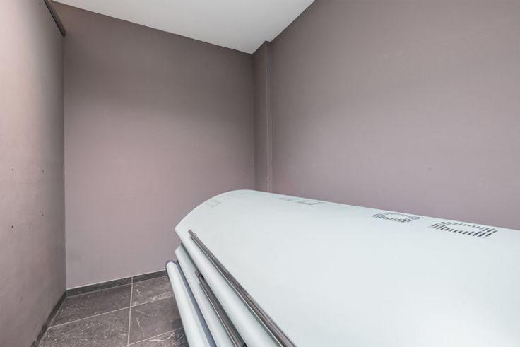 De hoofdruimte van 34 m² is ideaal om klanten te ontvangen, terwijl een aparte, door een lichtkoepel verlichte kantoorruimte privacy en comfort biedt. De begane grond omvat ook een functionele keuken, een technische ruimte, een gerenoveerd toilet en een buitenplaats.