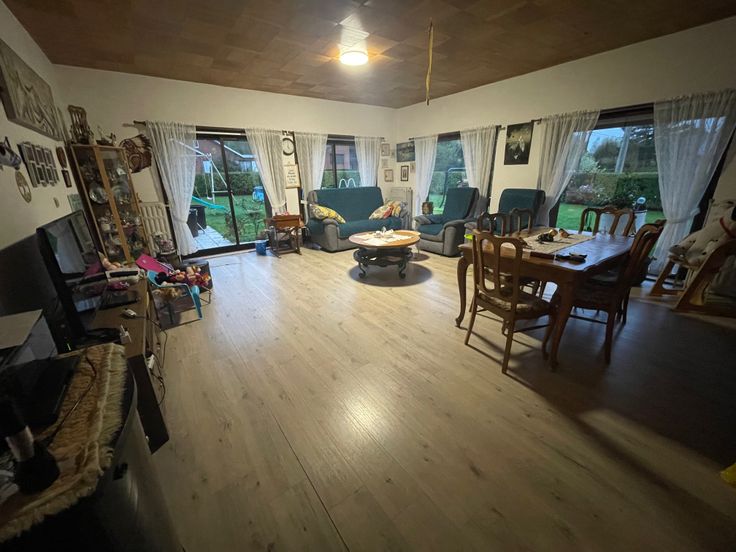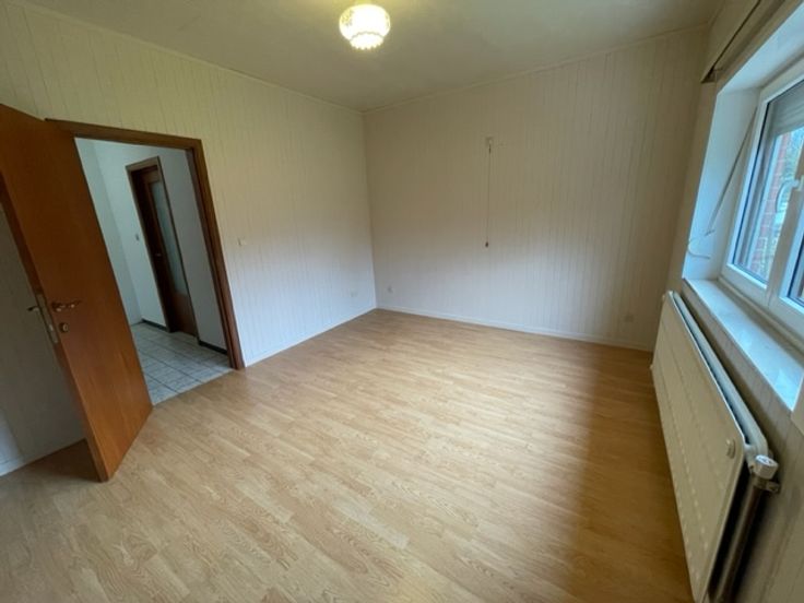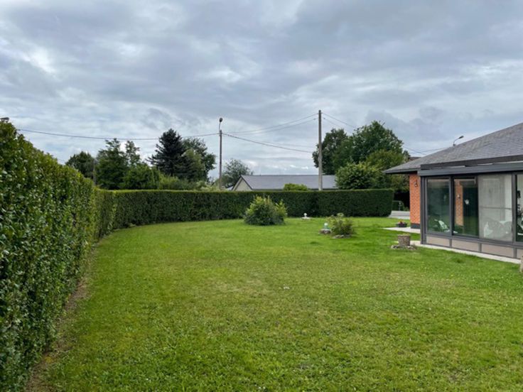 Grenier non aménageable, garage, chauffage central mazout, jardin 7 ares 90 ca, lotissement résidentiel, châssis double vitrage + volets, proximité des commerces et hôpital, situation ''Chant des Oiseaux''. Actuellement louée 900,00 €.
