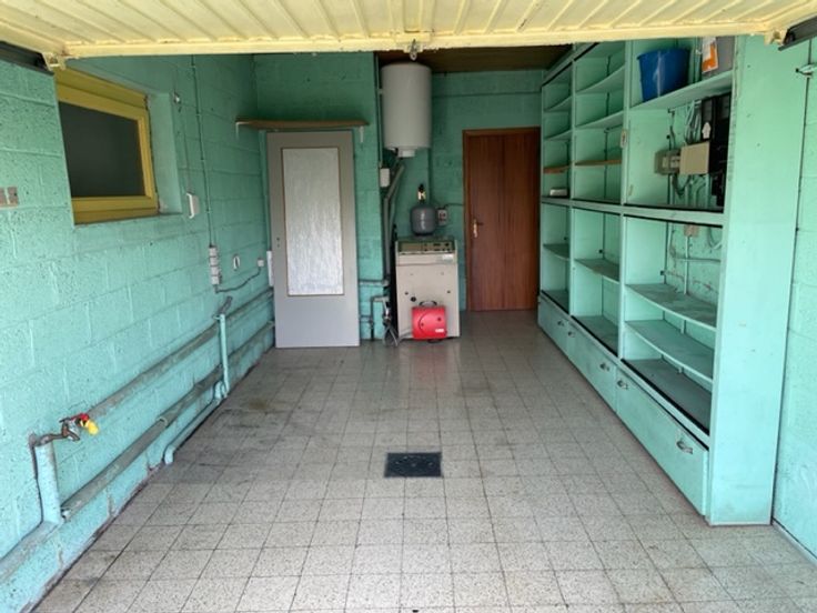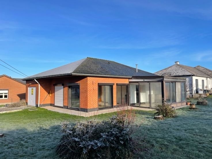 Villa comprenant : sas d'entrée, vaste hall d'entrée, wc individuel, living-séjour 33 m², cuisine-équipée avec en prolongement une véranda (16m²), salle de bain avec douche et wc, 2 chambres, vestiaire.