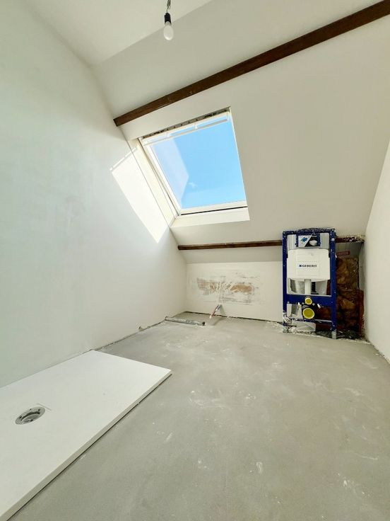 Deze woning onderscheidt zich door de uiterst kwalitatieve afwerking met veel aandacht voor licht, ruimte en comfort! De binnen afwerking (keuken/badkamer/terras-, vloer- en wandtegels …) kan naar keuze van de koper worden bepaald. Momenteel is de woning nog in aanbouw. De ruwbouw is reeds afgewerkt en ook de pleisterwerken zijn afgerond. Op het gelijkvloers is er vloerverwarming geïnstalleerd en op de verdiepingen worden nog radiators geïnstalleerd. De woning staat nu klaar om de vloerwerken aan te vatten. In de prijs is een vloertegel voorzien met een handelswaarde van 45,00 EUR en een wandtegel in de badkamer met een handelswaarde van 54,00 EUR. Er worden nog 2 trappen geplaatst in rubberwoo