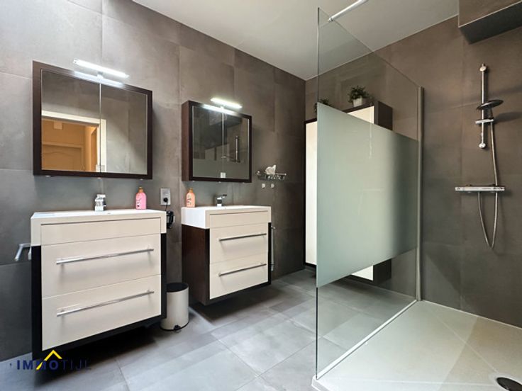 Op de eerste verdieping bevinden zich ruime 2 slaapkamers en een tweede badkamer met ligbad, dubbel lavabomeubel & toilet. Via de nachthal heb je ook toegang tot het zonnig dakterras (west gericht). Op de tweede verdieping bevindt zich de zolderruimte die zich perfect leent voor extra mogelijkheden (trap met valluik). Deze zolder kan eenvoudig worden omgetoverd tot één of twee extra slaapkamers.