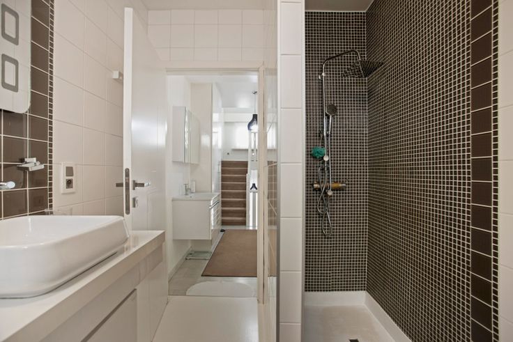 en de badkamer terug. De badkamer beschikt over een inloopdouche, wastafel en toilet. De