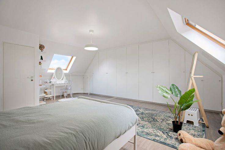 3de verdieping is ingericht als zeer ruime slaapkamer met ingemaakte kasten. Deze kamer
