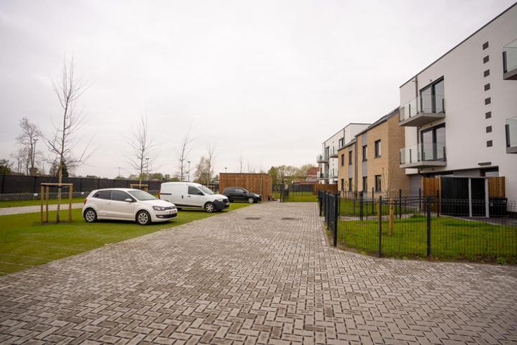 Superbe appartement avec parking privatif situé au premier étage d'une résidence récemment construite. Composition : hall d'entrée, séjour lumineux avec cuisine équipée et accès balcon, hall de nuit distribuant deux chambres, une salle de douche, une toilette séparée et une buanderie. Parking extérieur privatif et sécurisé + local vélos. L'appartement est équipé de stores et luminaires. Chauffage central gaz et ventilation double flux. Excellente performance énergétique avec un PEB classe A! Loyer de 825 euros/mois, provision pourc harges communes de 70 euros/mois et garantie locative de 2 mois de loyer.