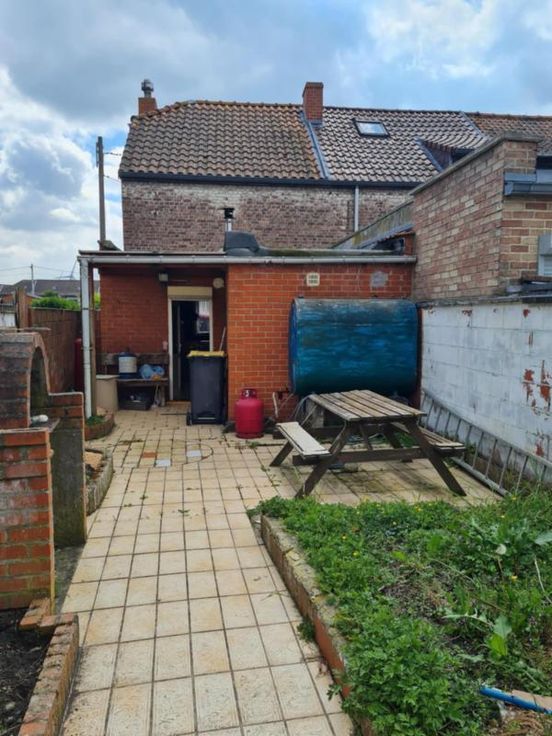 Vente sous autorisation judiciaire. RDC: living, salle à manger, cuisine (semi-équipée), salle de bain (baignoire) et WC. Etage: 2 chambres Combles: non aménagés et accessibles par petite trappe. Extérieur: cour et garage situé en fond de terrain. Chauffage poêle au pellets et poêle au mazout. PEB indice D et installation électrique à mettre en conformité. VISITES : SANS RENDEZ-VOUS, le samedi de 10h00 à 13h00.