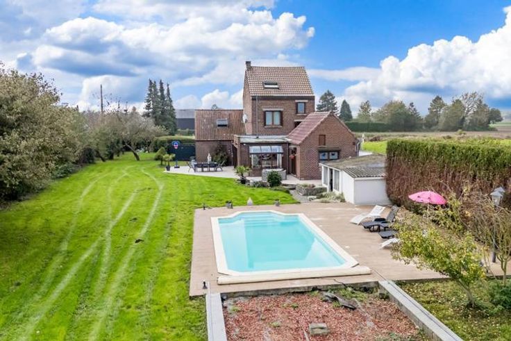 Splendeur à Montroeul - Votre futur oasis aux portes du village ! Offre unique, découvrez cette magnifique propriété 4 façades nichée sur 35 ares de verdure, prête à vous offrir confort et raffinement. Un coin de paradis avec piscine chauffée (9x4 m, pompe à chaleur et bâche de sécurité) pour des étés en toute tranquillité, entourée d'un verger généreux (pommier, poirier, prunier, cerisier et noisetier) pour des récoltes maison. L'annexe vous offre des possibilités infinies, comme un futur pool-house. Le confort au rendez-vous : État impeccable : chaque détail a été pensé -Électricité aux normes -Double garage et panneaux solaires pour une gestion économique. Rez-de-chaussée : entrée accueillante, bureau ou chambre, wc, séjour lumineux avec insert et vue jardin, cuisine dînatoire hyper équipée avec accès direct à la terrasse, salle de bains, vaste buanderie. À l'étage : suite parentale avec dressing et salle de bains, deux autres chambres dont une au 2ème étage avec placards. Prenez rendez-vous dès maintenant avec François pour visiter ce bijou au 0465.84 69 30 ! Offre à partir de 335.000€.  Honoraires d’agence à charge de l’acquéreur: 4,84% TTC. Publicité à caractère non contractuel et ne constituant pas une offre. Le pouvoir décisionnel appartient au vendeur. Ce dernier étant libre d'accepter ou de refuser n'importe quelle offre en cours à tout moment, quel que soit son montant, qu'elle soit la plus basse ou la plus élevée et quel que soit son ordre d'arrivée.