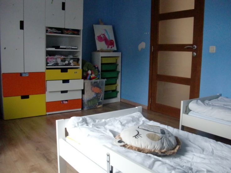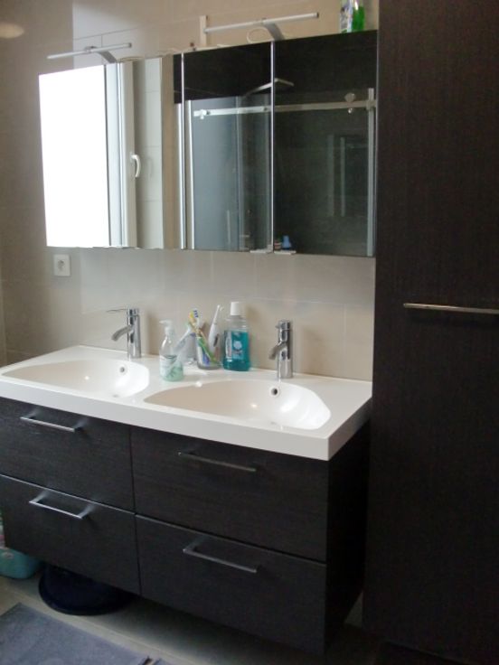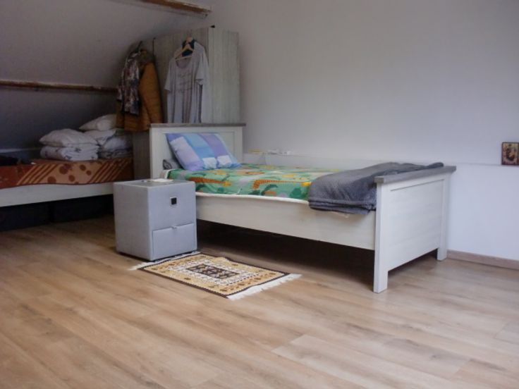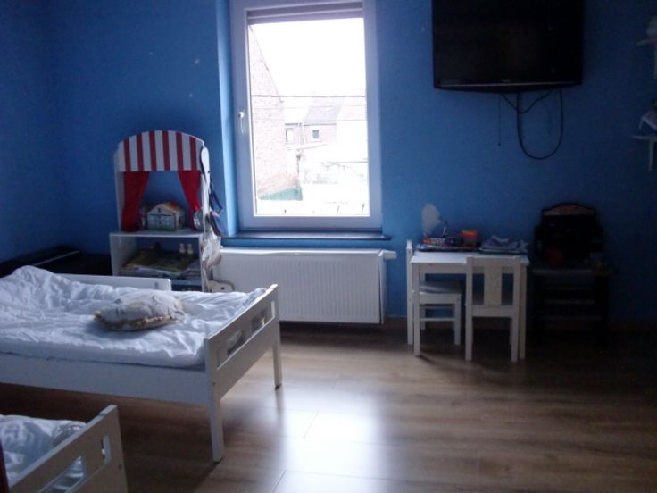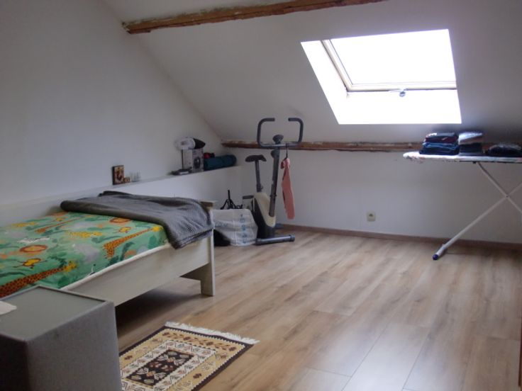 Etage : palier avec w-c séparé et lave-mains, 2 chambres et grenier aménagé en une grande chambre.