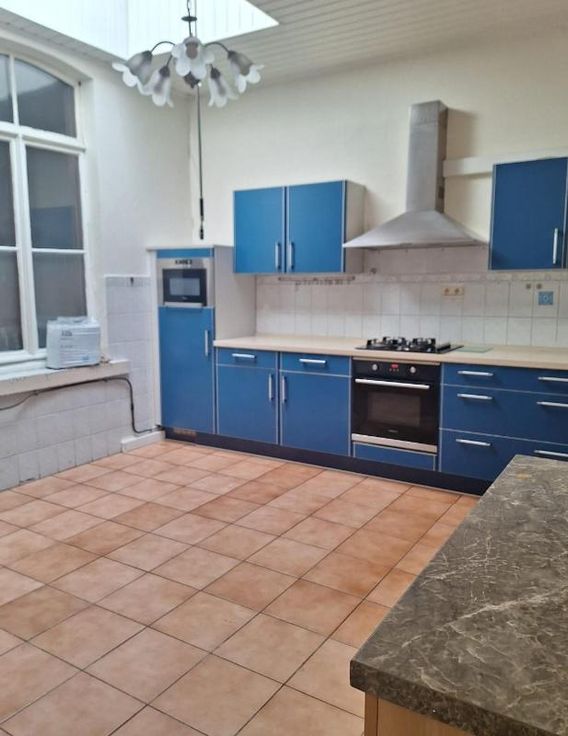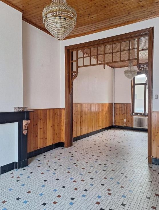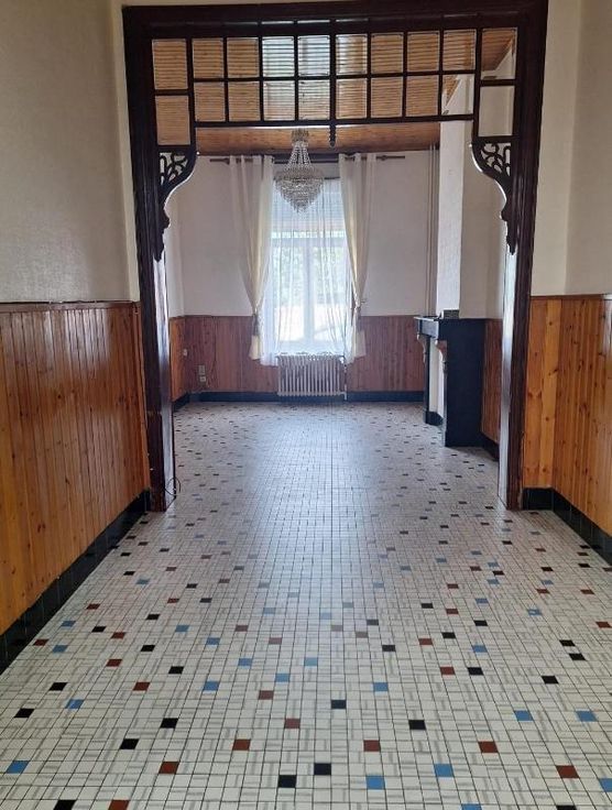 Maison d'habitation proche du centre et de toutes commodités composées : au rez-de-chaussée : un hall, un living, un salon-salle à manger, une cuisine équipée, une salle de douche avec WC / 1er étage : 2 chambres - Grenier aménagé en 2 chambres / Cour / Double vitrage, chauffage central au mazout