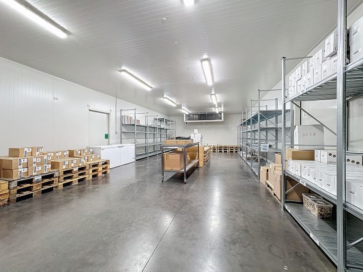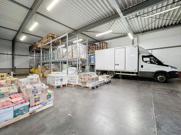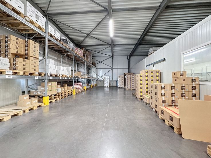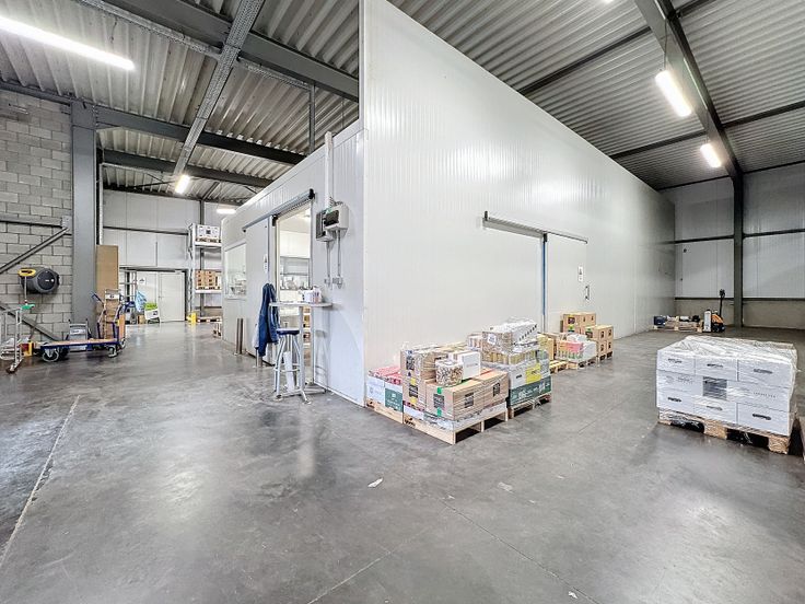 Caractéristiques entrepôt : Béton lissé - Hauteur minium 4m90 - 2 quais de chargement avec niveleurs - 2 portes sectionnelles motorisées - Chambre froide (optionnelle) - Triphasé