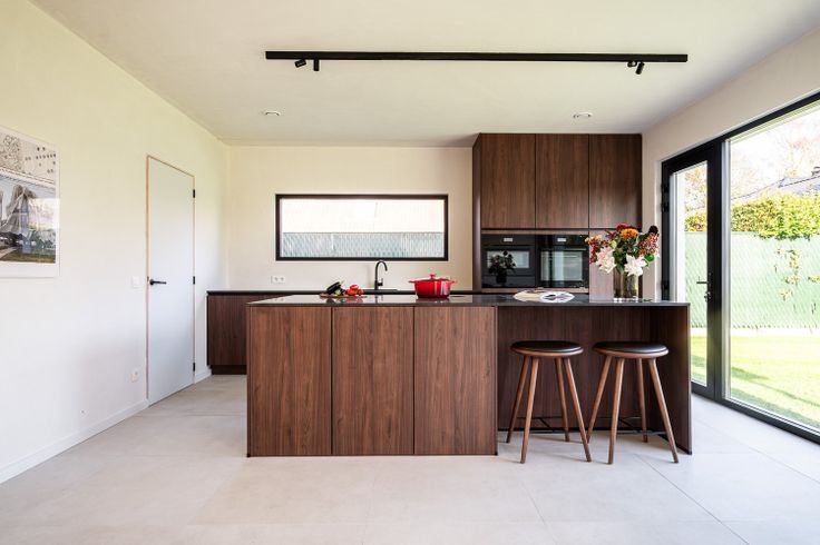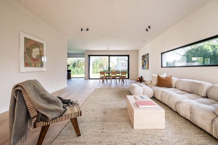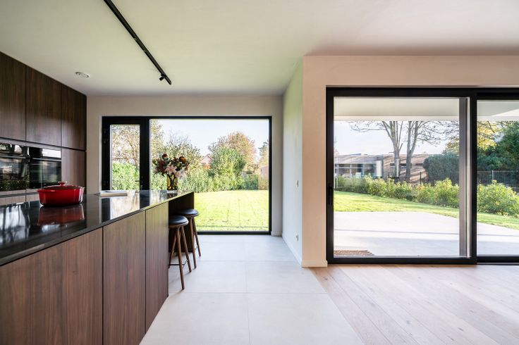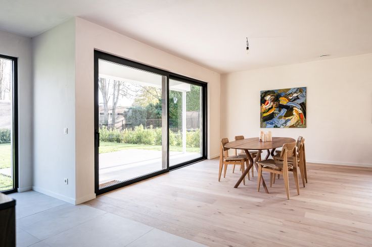 Moderne en energiezuinige nieuwbouwvilla met een hedendaagse architectuur. Deze moderne en energiezuinige villa heeft een bewoonbare oppervlakte van 241 m² en beschikt over een hedendaagse architectuur. Verkoop onder 6% BTW mogelijk tot het eind van dit jaar. Bij de binnenkomst verwelkomd in een inkomhal, waar een vestiaire discreet is weggewerkt achter een verfijnde walnoot houten wand. Daarnaast hebben we een bureauruimte met uitzicht op de patio. De living, die naadloos overgaat in het eetgedeelte en de keuken, versterkt het gevoel van ruimte. De keuken, met een centraal keukeneiland, is uitgerust met hoogwaardige apparatuur, waaronder een inductiekookplaat met geïntegreerde dampkap. De open keuken biedt ook toegang tot de tuin, waardoor er een voortdurende verbinding is met de groene omgeving. Voor het interieur is gekozen voor natuurlijke materialen zoals parket en natuursteen, gecombineerd met een licht kleurenpalet, wat een luchtige sfeer creëert. Als extra is er een praktische berging, voorzien van ingebouwde kasten. Op de eerste verdieping bevinden zich twee slaapkamers en een badkamer die is uitgerust met een dubbele lavabo en een inloopdouche. De masterbedroom heeft een dressing en een en-suite badkamer, voorzien van een inloopdouche, ligbad en dubbele lavabo. De zuidoost georiënteerde tuin is zeer onderhoudsvriendelijk aangelegd en volop in groei. Er zijn voldoende parkeerplaatsen voor meerdere auto’s op de oprit inclusief een carport. Deze i