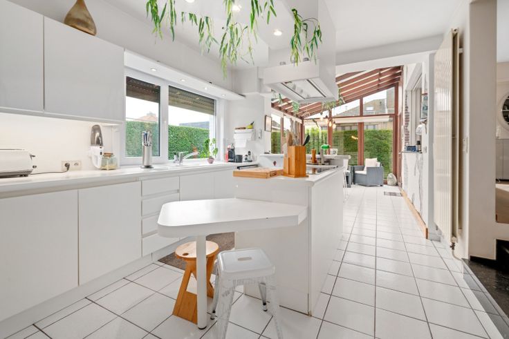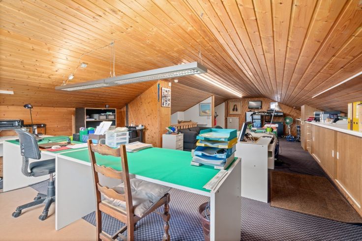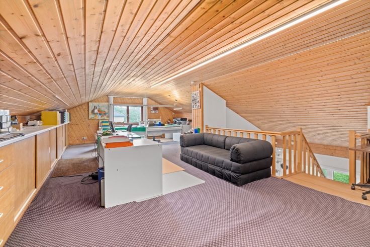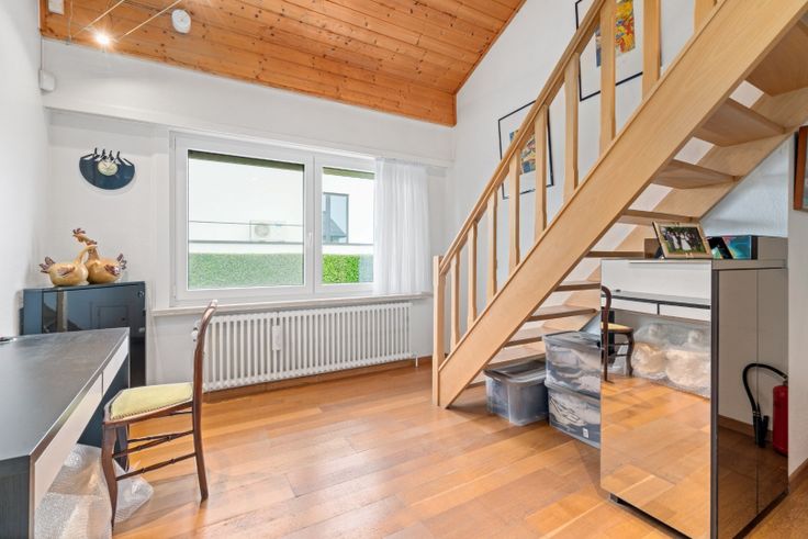 Via de 3e slaapkamer kan je de mezzanine bereiken op heden ingericht als bureelruimte met maar liefst 4 volwaardige werkplekken. Afzonderlijke 2e badkamer voorzien.