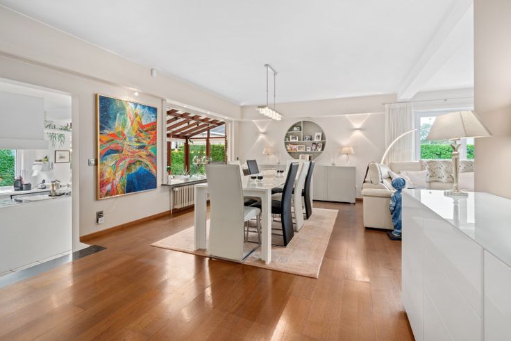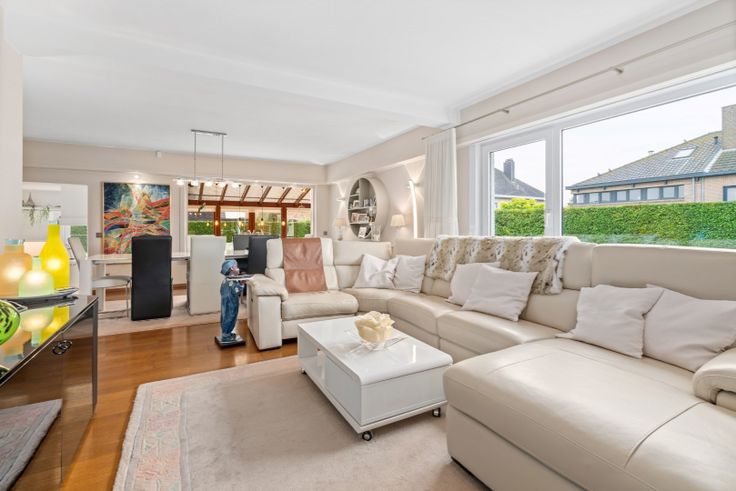 Royale en ruime alleenstaande villa (bewoonbare opp: 366 m²) gelegen op een grondoppervlakte van 620 m² bestaande uit een ruime inkomhal afgewerkt met een volwaardig parket op de ondergrond. Verderop kan de afgesloten en functionele keuken teruggevonden worden voorzien van volgend apparatuur: keramische kookplaat, dampkap, koelkast en heel wat ingemaakte kasten. Aangebouwde veranda uitgevende op de rustige achterzijde. Ruime woonkamer tevens voorzien van parket. Verzorgde badkamer met ligbad en douche. 3 slaapkamers op het gelijkvloerse niveau.