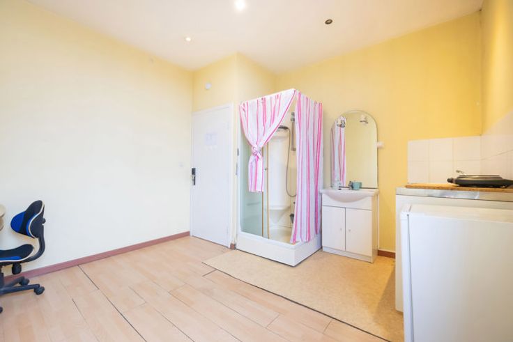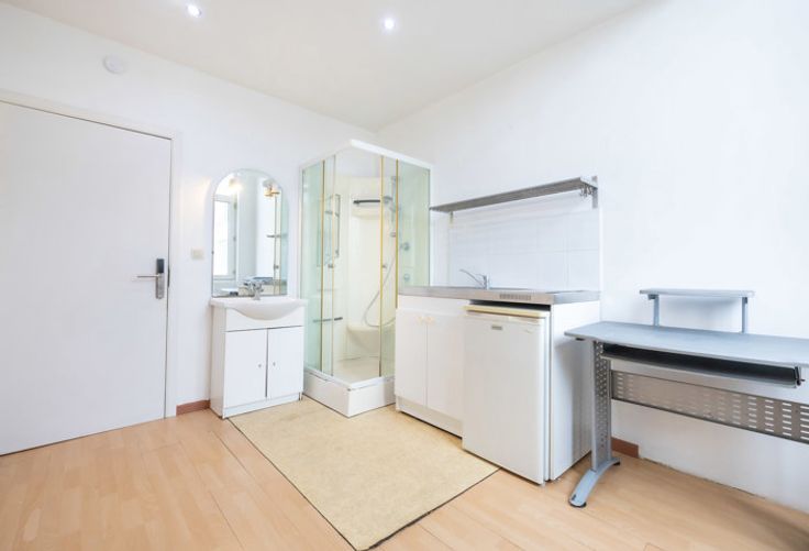 Les chambres, confortables et lumineuses, varient en taille de 12 à 14 m². Les plus grandes sont dotées d’un meuble kitchenette avec évier, double plaque électrique et petit réfrigérateur, offrant ainsi aux locataires un espace de vie indépendant. Les plus petites chambres bénéficient d’une cabine de douche ou d’un point d’eau, et toutes partagent des installations pratiques, avec des douches et WC sur le palier. L’immeuble est également équipé d’une buanderie payante et d’une cuisine commune entièrement équipée, offrant un confort supplémentaire aux résidents.