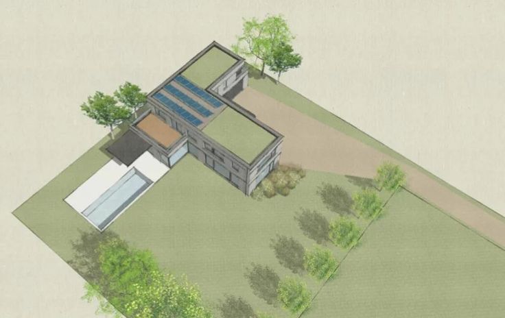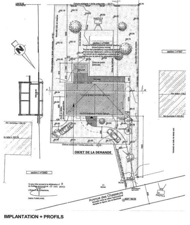 Bouwvergunning verkregen in 2017 (te hernieuwen) voor de bouw van een hedendaagse eengezinsvilla, 4 gevels op 2 niveaus (gelijkvloers + 1ste verdieping) met 375m² bewoonbare oppervlakte (450m² bruto). Geen bouwvergunning vereist en geen aannemer nodig.