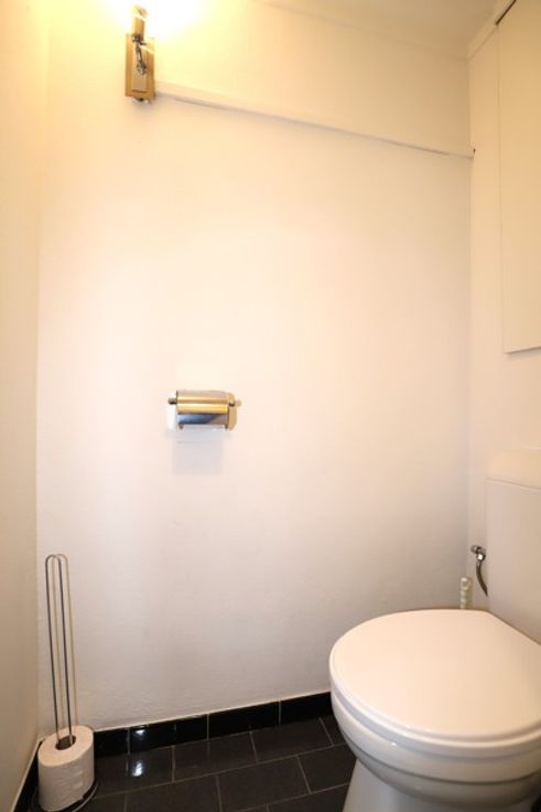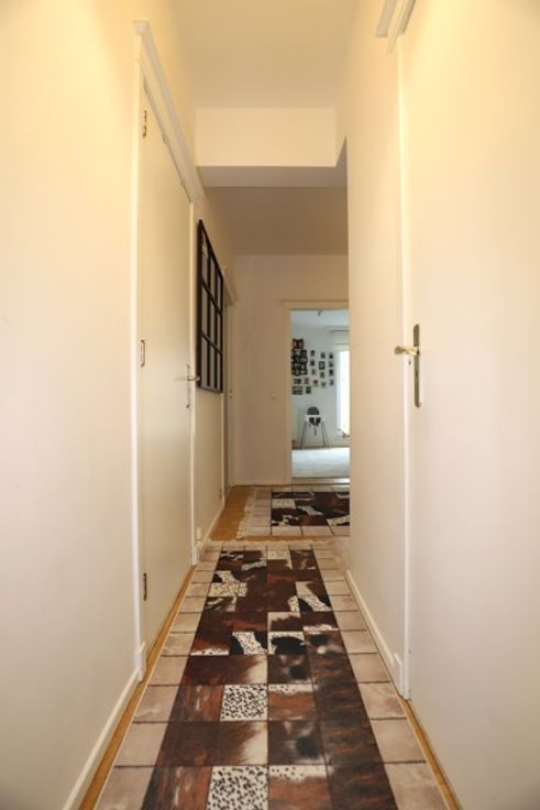 -Ruime inkomhal met vestiaire en berging op een mozaïek parket, leefruimte op parket aansluitend het terras, het terras zelf, geïnstalleerde keuken met ingebouwde toestellen werkblad in natuursteen, overloop, 2 slaapkamers (9,5m²/15m²), aparte wc kamer met erboven een opbergkast, op te frissen badkamer met (ligbad-lavabo-aansluitingen wasmachine), op kelderniveau een privatieve kelderberging.