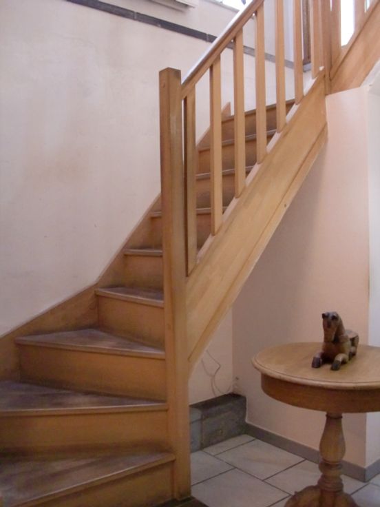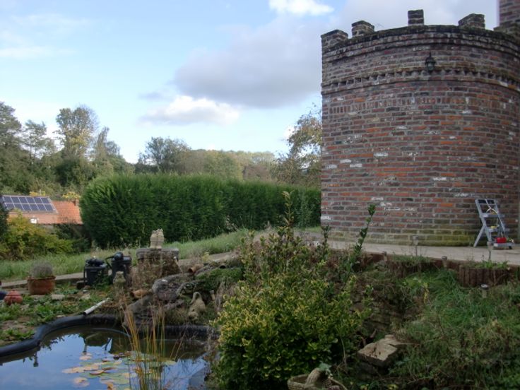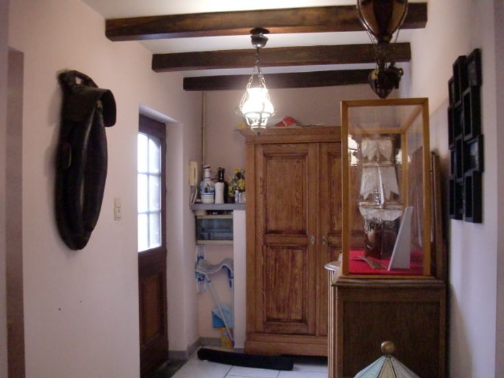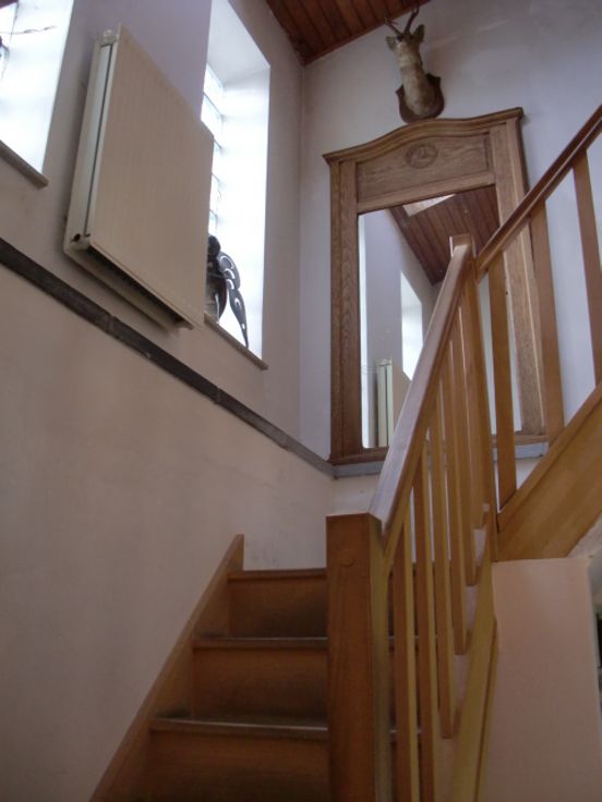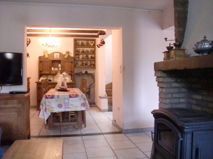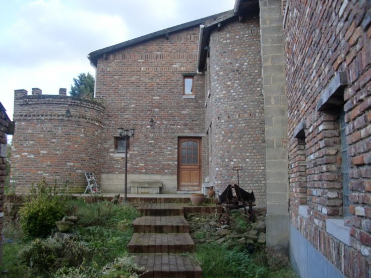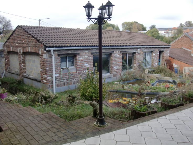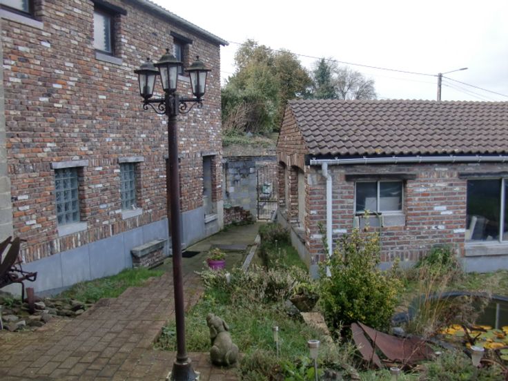Maison d'habitation en 3 façades, genre fermette avec dépendances et jardin arboré avec étang, comprenant : Hall d'entrée, w-c séparé avec lave-mains, spacieux living avec feu au bois, grande cuisine équipée en chêne, salle de bain avec douche, lavabo et w-c, grande buanderie équipée d'une douche et w-c avec accès extérieur, annexes avec remise et atelier, terrasse aménagée avec pergola, beau jardin clôturé avec étang.