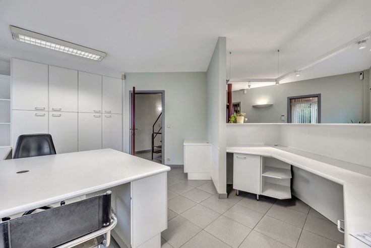 Voor meer info of bezoek, bel 02 884 23 25: Topo-Immo biedt u dit ruim kantoorgebouw aan, gelegen op een perceel van 7a72ca, met voldoende parkeergelegenheid en gesitueerd op een zeer strategische locatie langs de N8 (Brussel-Ninove). Het gebouw bestaat uit 3 verdiepingen: Het gelijkvloers omvat een lichtrijke inkomhal (16m²) met onthaal (16m²) en aparte wachtruimte (7m²). Verder kan je hier nog 2 ruime burelen terugvinden van elk 24m² en een archiefruimte (7m²). Op het verdiep bevinden zich nog 3 bureauruimtes (12 m², 19m² en 27 m²). De kelderverdieping omvat een vergaderzaal (20m²), 3 burelen (13m², 15m² en 15m²), een lunchruimte met kitchenette (15m²), een kleine bergruimte en een sanitair blok met 2 gescheiden toiletten. Unieke handelsligging!! Ideaal voor KMO's of zelfstandigen die een toplocatie zoeken voor hun onderneming! EPC D
