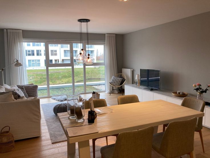 Het appartement is gelegen op het gelijkvloers en omvat een inkomhal, een lichte en open leefruimte met een volledig uitgeruste keuken, eetplaats en een gezellige woonkamer die uitkomt op het terras.