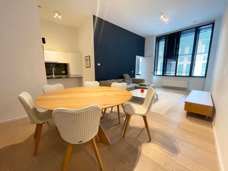 VISITES ET RENSEIGNEMENTS AU 0497/17.17.65 Idéalement situé dans le centre de Bruxelles, proche de toutes commodités, venez visiter ce bel appartement de standing meublé situé au 3ième étage d'un immeuble historique de Bruxelles anciennement la Caisse d'Epargne ayant été totalement rénové. Celui-ci se compose d'un hall d'entrée, un grand séjour de 31m2 avec cuisine USA full équipée, une arrière cuisine, une buanderie, un wc séparé, deux chambres de respectivement 16,5 et 15m2, une salle de bain, une salle de douche, une cave et un emplacement de parking. Immeuble sécurisé avec service de conciergerie. L'appartement possède une VMC double flux et des doubles châssis double vitrage avec stores. Les 270 euros de charges comprennent les communs, le chauffage et l'eau chaude. Libre immédiatement