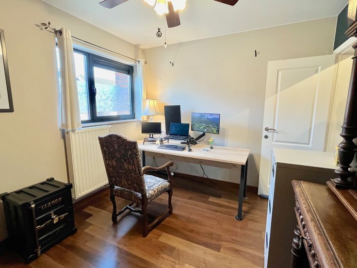 Spacieuse maison 3 façades récente, de plus de 200 m2, en parfait état avec 4 chambres et de belles spécifications. Elle offre une hall d'entrée, un wc, une buanderie - chaufferie, une cuisine équipée avec ilot central petit-déjeuner, un espace salon et une salle à manger prenant jour sur le jardin (orienté Sud-Est), un garage. Au 1er, un palier dessert 3 chambres, dont une suite parentale - salle de bain (baignoire et grand lavabo) - débarras/dressing, et une salle de douche avec lavabo, et un wc séparé. Au 2ème étage, une grande chambre avec sa grande salle de douche italienne - wc - lavabo, deux dressings. Jardin arboré et clôturé, terrasse Sud-Est, passage latéral piéton,... PEB B (faibles consommations), chauffage central au gaz, 3 pompes à chaleur / air conditionné, volets solaires sur Velux, double vitrage, système d'alarme, certificat de conformité électrique, citerne d’eau de pluie, adoucisseur d'eau,… Prix indicatif : 330.000€ - À découvrir sans tarder - Prix, publication et superficies à titre indicatif, non contractuels -