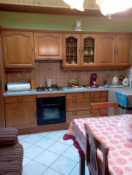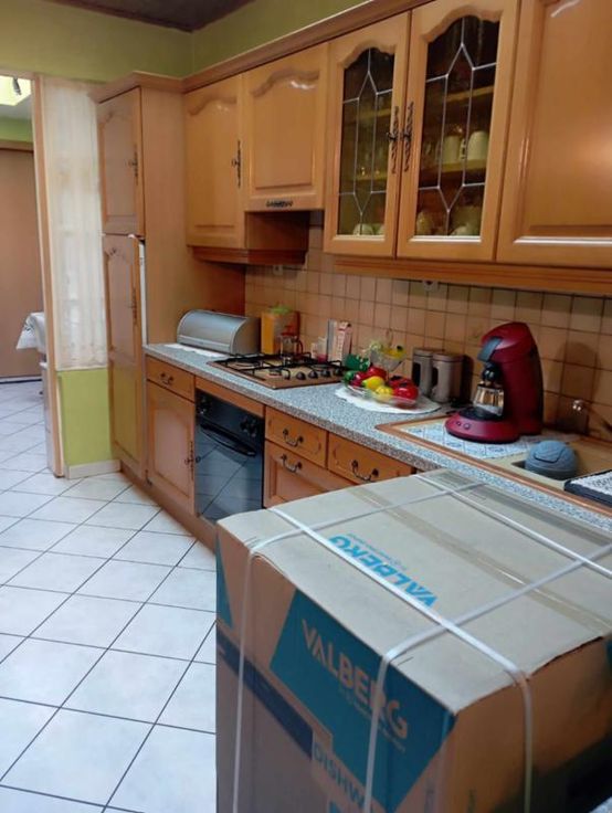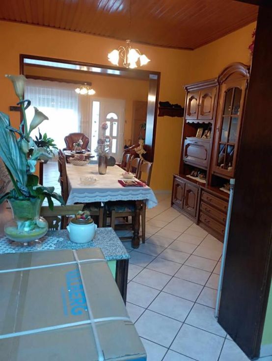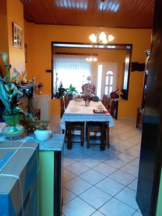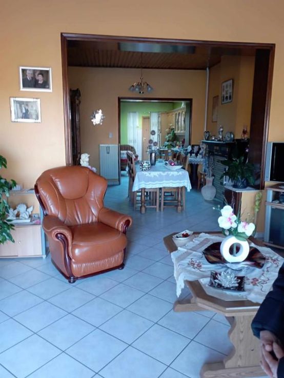 Une maison d'habitation en très bon état d'entretien Au rez : Une grande pièce en enfilade comprenant: -Un salon -une salle à manger -une cuisine équipée-une arrière cuisine+ un wc Sous-Sol : une buanderie – carrelée- bien sèche ETAGE 4 chambres (assez spacieuses) une salle de bains DIVERS : Chauffage central mazout-cuve aérienne de 3000l ds la cave Châssis double vitrage PVC blancs Volets à l’avant Toiture de+-10 ans Carrelage partout Le grenier est aménageable