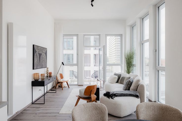 Ontdek dit lichtvolle appartement op de 5e verdieping van een modern gebouw, ontworpen voor comfort en duurzaamheid. De inkomhal beschikt over een vestiaire, apart toilet en wasruimte. De zonnige woonkamer van 35 m² geeft uit op een aangenaam terras van 7 m². De open keuken is volledig uitgerust en een gezellige bureauruimte van 6 m² maakt de woning  helemaal af.  Het appartement heeft twee ruime slaapkamers en een moderne badkamer met dubbele wastafel en ligbad. Het gebouw is ontworpen volgens de hoogste energiebesparende normen (EPC A), met een prachtig gemeenschappelijk dakterras en toegang tot verschillende tuinen binnen het complex.  Kelder, 2 fietsplaatsen inbegrepen en parkeerplaats beschikbaar tegen extra kost. Voordelige voorwaarden: grond onderworpen aan registratierechten (12,5%) en constructie onderworpen aan BTW (21%). Neem contact op met Sébastien voor een simulatie van de totale kosten of plan een bezoek om de kijkwoning te bezichtigen: Sébastien Jacobs: sj@bathim.be of 0474/ 92 03 60.